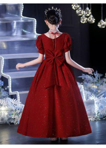 €49.19This red flower girl dress is simply stunning The timeless and elegant princess cut is reinterpreted with a modern twist thanks to the short, puffy sleeves. The square neckline, both chic and understated, highlights the child's posture. The shiny fabric, sprinkled with fine sequins, adds a touch of magic and light to the outfit, perfect for a special occasion. We appreciate the length of the dress, which reaches the ankles, allowing the little girl to move easily while remaining elegant. A perfect choice for a refined ceremony!
