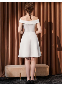 €28.79This short white dress, with an asymmetrical style, offers a modern and elegant silhouette. The boat neckline accentuates the shoulders, while the skirt, both fluid and structured, creates a sophisticated layered effect. The asymmetrical cut, longer at the back than at the front, adds a touch of originality and dynamism. The seemingly satin fabric gives the dress a luxurious appearance. Perfect for a cocktail party or a chic evening, this model is both feminine and bold. The asymmetry is masterfully executed, avoiding a too-heavy effect, and the simplicity of the white color highlights the finesse of the cut. An elegant and contemporary dress.
