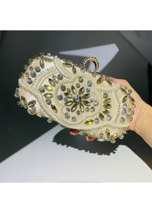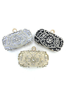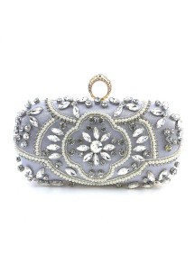 Evening Clutch Bag with Strass and Pearl Floral Pattern