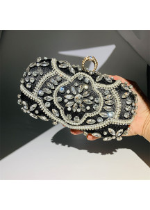 This sparkling evening clutch bag is a true work of art. The intricate floral pattern, composed of cut crystals and delicately arranged pearls, gives this model a luxurious and enchanting appearance. The rounded shape, enhanced by the golden elements, adds a touch of elegance and refinement. This sumptuous clutch bag will magnify any evening outfit, subtly combining glamour and sophistication. A true collector's piece, it embodies the quintessence of luxury craftsmanship and will seduce connoisseurs of exceptional fashion accessories.