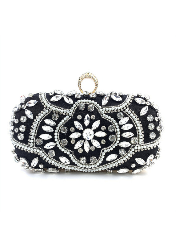 Evening Clutch Bag with Strass and Pearl Floral Pattern