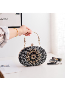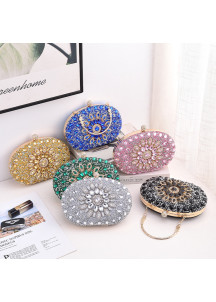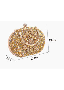 This exquisite evening clutch embodies the ultimate expression of luxury and elegance. Completely covered in sparkling pink crystals, it exudes an aura of unparalleled sophistication. The refined floral design, enhanced by delicate golden touches, gives this accessory a royal and majestic appearance. Every detail, from the elegant oval shape to the fine chain straps, testifies to the exceptional craftsmanship and expertise of the artisans. This exceptional piece will undoubtedly elevate any outfit with flair, becoming the indispensable complement to the most glamorous moments. A true work of art that embodies the quintessence of style and refinement.