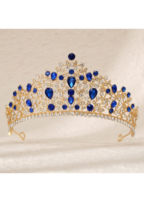 This magnificent gold tiara with sparkling crystals is a true showstopper. Its majestic and refined design makes it a sublime fashion accessory, a veritable queen's crown to illuminate any bridal look.