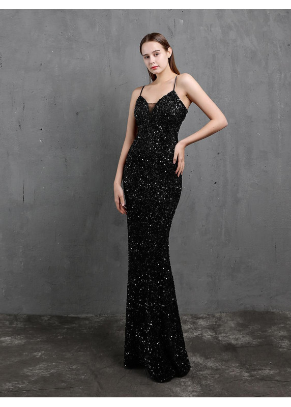 Sparkling Sequin-Covered Evening Gown with Plunging Neckline