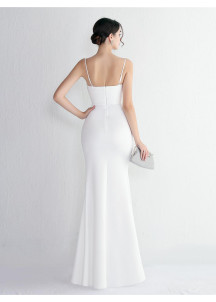 Revealing White Evening Gown with V-Neck and Side Slit