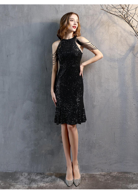 This mermaid evening gown captivates with its sophisticated allure. The open neckline gracefully highlights the shoulders, while the fitted cut harmoniously embraces the curves. The brilliant burgundy sequins reflect dazzling light, creating a striking metamorphic effect. The delicate asymmetric tiers add a touch of sensuality. An exceptional model, blending radiance and elegance for an irresistibly glamorous silhouette.