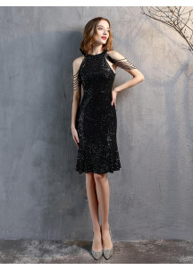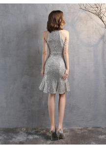 This mermaid evening gown captivates with its sophisticated allure. The open neckline gracefully highlights the shoulders, while the fitted cut harmoniously embraces the curves. The brilliant burgundy sequins reflect dazzling light, creating a striking metamorphic effect. The delicate asymmetric tiers add a touch of sensuality. An exceptional model, blending radiance and elegance for an irresistibly glamorous silhouette.