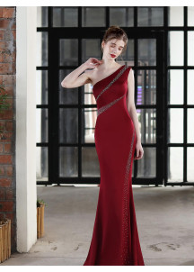 Vestido de Noche Burdeos con Diseño Asimétrico