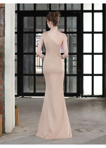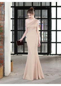 Este vestido de noche escarlata encarna la elegancia y la sensualidad refinada. El diseño asimétrico con escote destacado resalta con gracia las curvas, mientras que los detalles brillantes añaden un toque irresistible de glamour. La silueta ajustada revela armoniosamente la figura, convirtiendo a quien lo lleva en el centro de atención de una velada de alto nivel. Esta creación de alta costura captura de manera sublime la esencia del estilo y la feminidad.