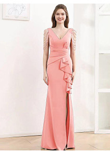 robe de soirée blanche décolleté en V élégant avec drapé et fente latérale