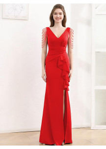 la coupe ajustée épouse harmonieusement les courbes. Cette robe de soirée blanche présente un décolleté en V élégant et une silhouette ajustée. Le drapé subtil sur le côté et la fente audacieuse ajoutent une touche glamour, parfaite pour les occasions spéciales.