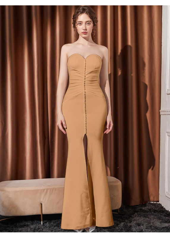 robe de cérémonie à bustier vert émeraude sirène ornée de boutons et d'une fente