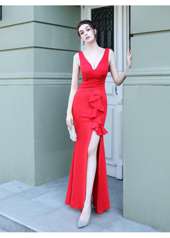 robe de soirée vert émeraude sirène avec décolleté en V plongeant