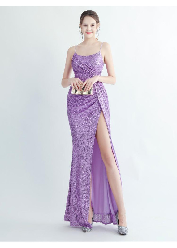Robe de soirée sequins vert émeraude raffinée avec fente latérale