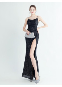 Robe de soirée sequins vert émeraude raffinée avec fente latérale