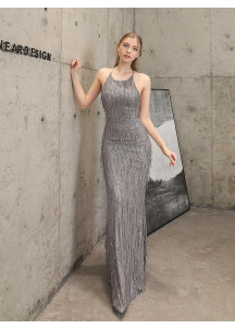 Cette robe captive par son allure sophistiquée et élégante. Le délicat jeu de franges sur le fourreau sculpte avec grâce la silhouette, évoquant une danse aérienne. Le dos croisé dévoile la nuque de manière sensuelle. La coupe moulante et la jupe fluide assurent un mouvement fluide et féminin. Les finitions luxueuses font de cette tenue un choix idéal pour briller avec une élégance glamour et une touche d'audace lors d'une soirée de prestige.