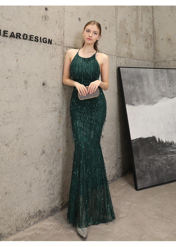 Cette robe captive par son allure sophistiquée et élégante. Le délicat jeu de franges sur le fourreau sculpte avec grâce la silhouette, évoquant une danse aérienne. Le dos croisé dévoile la nuque de manière sensuelle. La coupe moulante et la jupe fluide assurent un mouvement fluide et féminin. Les finitions luxueuses font de cette tenue un choix idéal pour briller avec une élégance glamour et une touche d'audace lors d'une soirée de prestige.
